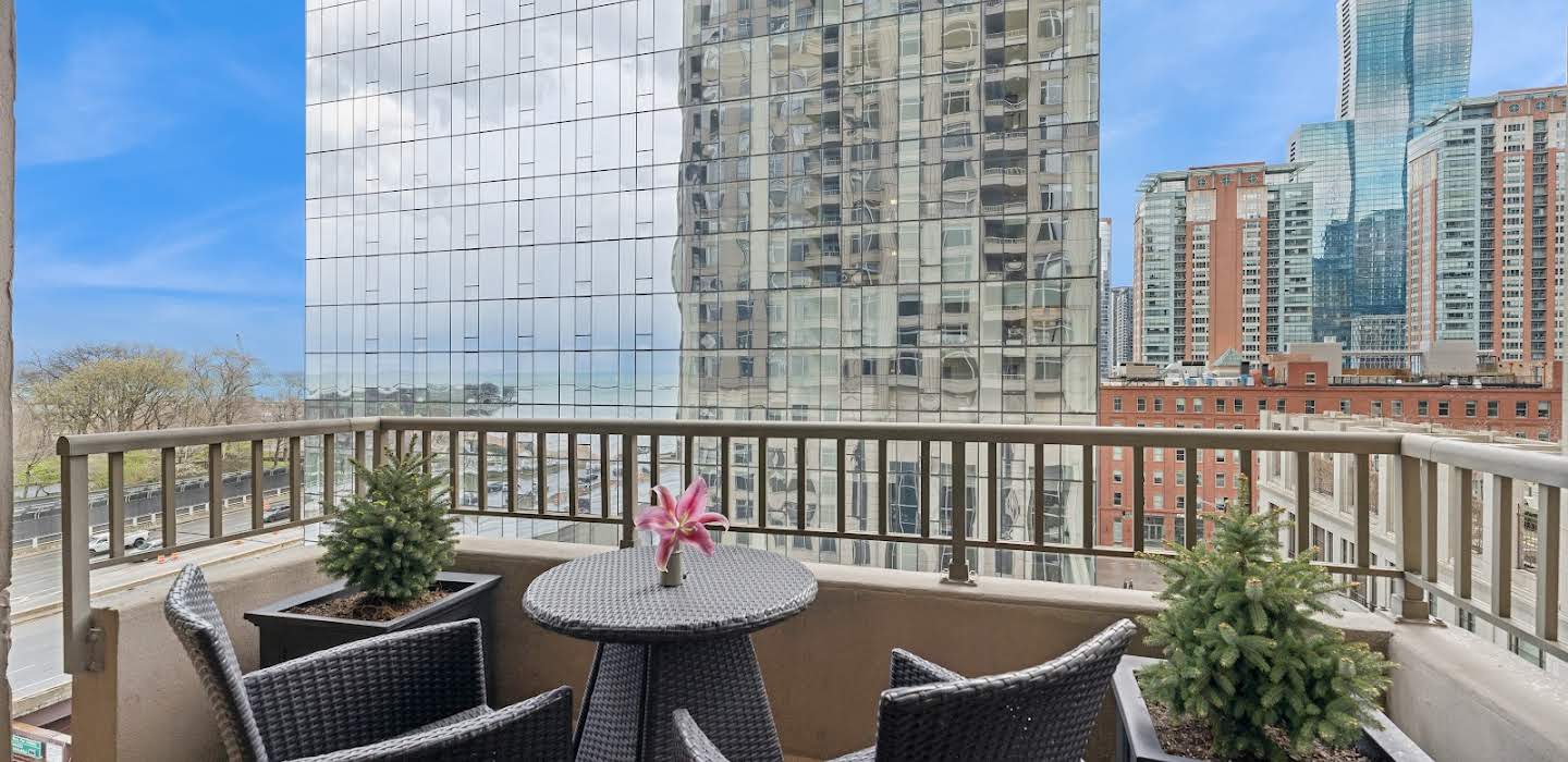 This Sunny South Facing large 2 bed/2 bath condo is a favorite as the split floorplan is the best! The marble foyer leads to the very spacious great room with wood floors, large windows, open kitchen, dining area and living room. The spacious kitchen features granite counters with seating for 4, stainless steel appliances including a gas range and quality cabinetry. The split floor plan offers an oversized master suite with a walk in closet plus 2 additional closets. The bath has a soaking tub, double vanity and stand alone shower. The second bedroom is conveniently appointed with a custom Murphy bed as well as access to the large private balcony for enjoying the outdoors! The second bathroom is located directly across the entry of the 2nd bedroom, nearly feels 'ensuite'. Also for your convenience is a laundry room with full sized washer and dryer with its own wing off the foyer. 530 N Lake Shore Drive offers 8 Free Guest Parking Spaces, Landscaped Roof Deck with Grills, Fire Pits, Outdoor TV & Pergola, Newly Renovated Fitness Center, Community Room, Business Center, Dog Run, Large Storage Lockers, Bike Room, 24-Hour Door Staff and On-Site Management & Maintenance. Heat, AC, Gas, Cable, Internet are Included in Assessments. Four pipe heating system and gas cooking! 9 foot ceilings and lots of windows! Parking space #441 is available for $40,000. Love this floorplan!