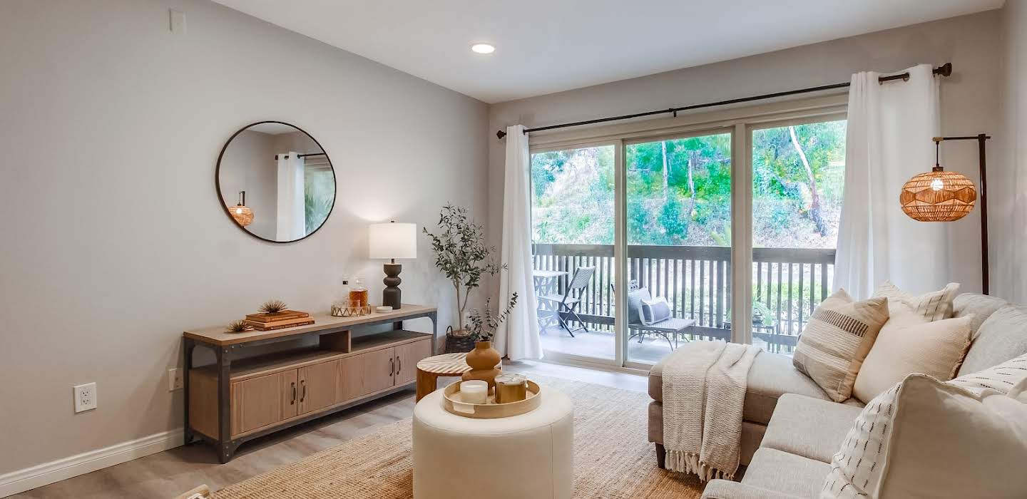 welcome to residence #106 at the desirable The Bluffs at Fashion Valley. This condo has one of the best quiet locations with lovely views to the bluffs and trees. This unit has several nice upgrades such as all double-pane sliding doors, luxury plank vinyl flooring throughout, a nice kitchen cabinets w/ self-close drawers, custom paint, recessed lighting and much more... This unit offers special features as central AC/Heating, walk-in closet and extra large balcony. The complex offers fantastic amenities including 2 sparkling pools, SPA, tennis courts, club house, gym, game room and BBQ's.