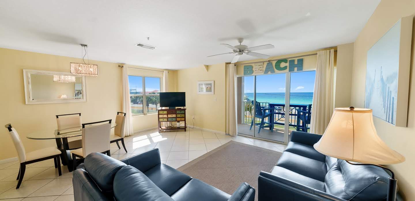 LIMITED TIME ONLY PRICED AT $499K ONLY UNTIL 12/31/24. Discover the charm of coastal living in this stunning one-bedroom, one-bath condo nestled within the sought-after Amalfi Coast Resort in Miramar Beach. This exceptional corner unit, positioned at the very front of the building, offers breathtaking, unobstructed views of the gulf, making it one of the most coveted units in the entire complex. This beach-facing gem is perfect for the savvy investor and promises minimal maintenance while delivering impressive rental returns. Inside, you’ll find a well-designed space with elegant diagonal tile flooring throughout the main living areas, complemented by cozy carpeting in the bedroom. The spacious bathroom features a separate tub and walk-in shower, and recessed bunks in the hallway provide additional accommodations for guests. The light-filled living area, with large patio doors leading to a private balcony, creates the perfect spot to relax and enjoy the serene sea breeze and spectacular views. The open-concept layout includes a dining area and a fully equipped kitchen with timeless white cabinetry, ideal for entertaining. This condo also offers the convenience of a deeded covered parking space and a separate storage locker. The Amalfi Coast Resort spans 8.6 acres and boasts an impressive 362 feet of beachfront, with amenities including two large swimming pools (one heated seasonally), lighted tennis courts and a well-appointed fitness center. Just a short walk across Scenic Gulf Drive brings you to the pristine beach, perfect for morning strolls, swimming and soaking up the sun. With nearby restaurants, shopping and Silver Sands Premium Outlets just minutes away, this condo offers both convenience and luxury.