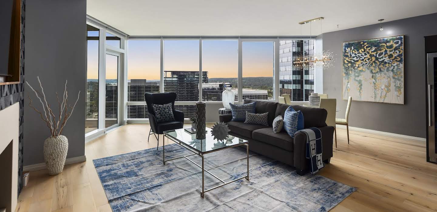 Experience the pinnacle of luxury living in this Bellevue Towers sub-penthouse. This 2-bedroom, 2.25-bathroom unit with a bonus room features high-quality craftsmanship and a wall of windows that showcase stunning city and lake views. The home boasts 9 foot ceilings, a chef's kitchen equipped with Sub-Zero and Wolf appliances, and custom cabinetry. Included are two parking spaces and extra-large storage. Enjoy premium building amenities like fitness rooms, a whirlpool spa, dining room, community theater, outdoor terraces, and 24-hour concierge. Perfectly located in downtown Bellevue, close to Bellevue Square’s top shops and restaurants.