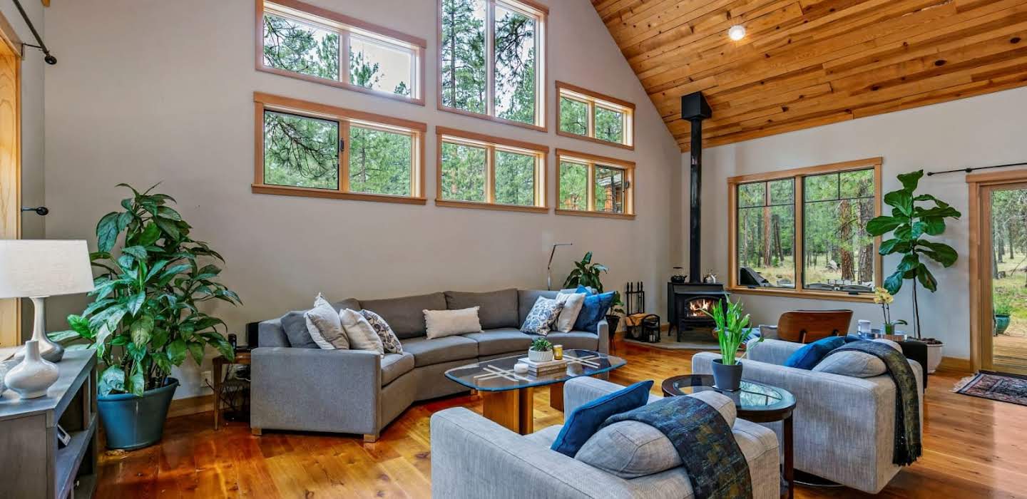 New listing in Black Butte Ranch! On the main floor, you'll find two primary suites, a laundry room, and a kitchen that opens to the great room with vaulted ceilings and a wood burning stove. Upstairs, there's a third bedroom and a spacious bonus room that could serve as a bunk room, an office, or a second living space. This newer build in BBR incorporates wood from the property's trees, giving it a unique charm. The home borders a wooded common area and is conveniently located near the Glaze Meadow Recreation Complex. Whether you're in search of a full-time residence, a second home, or a rental property, this exceptional home in BBR is a rare find!
